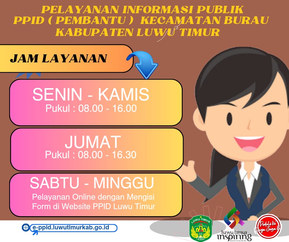 | Keterangan | Jam Layanan PPID Pembatu Kantor Camat Burau |