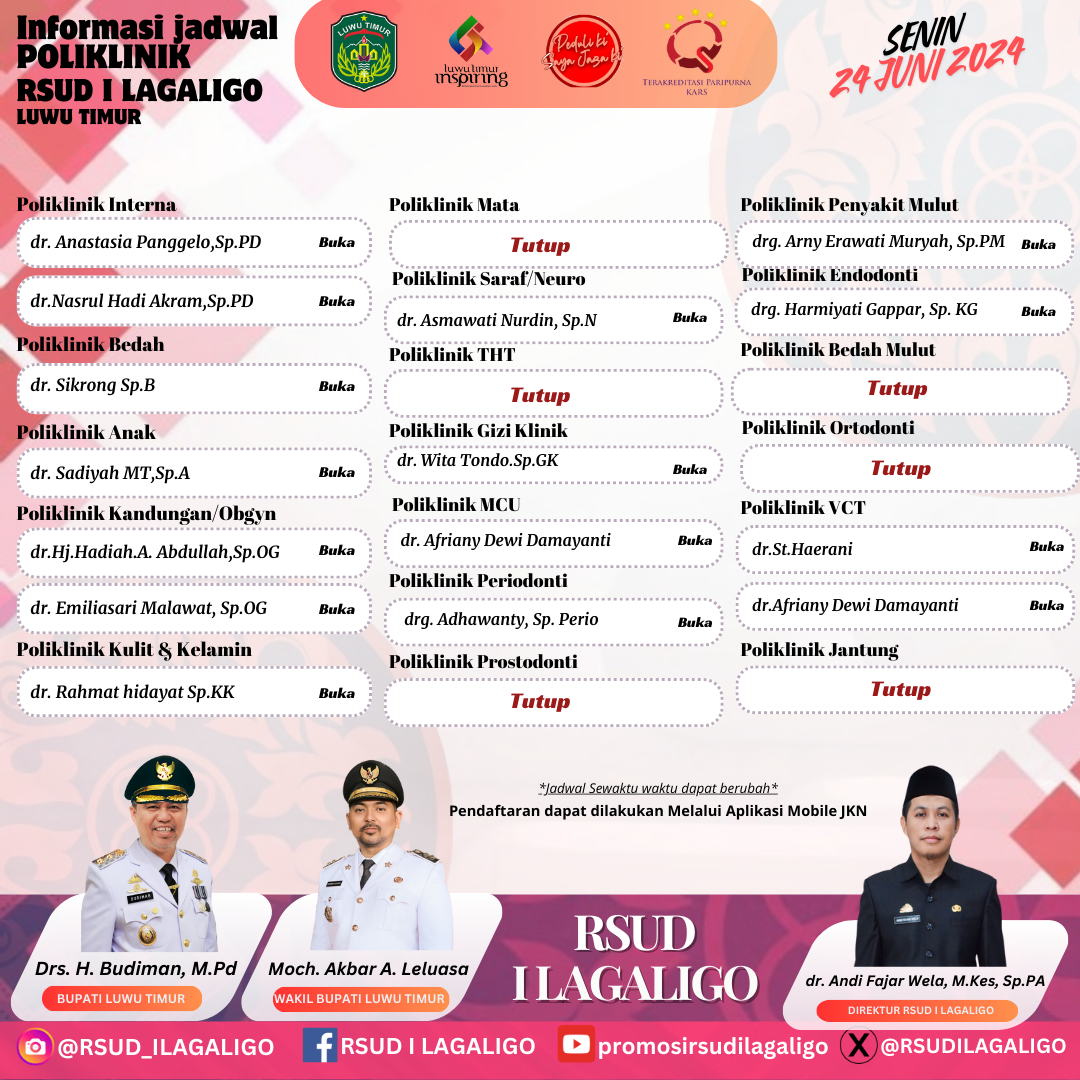 | Judul | Jadwal Pelayanan Poliklinik RSUD I Lagaligo |