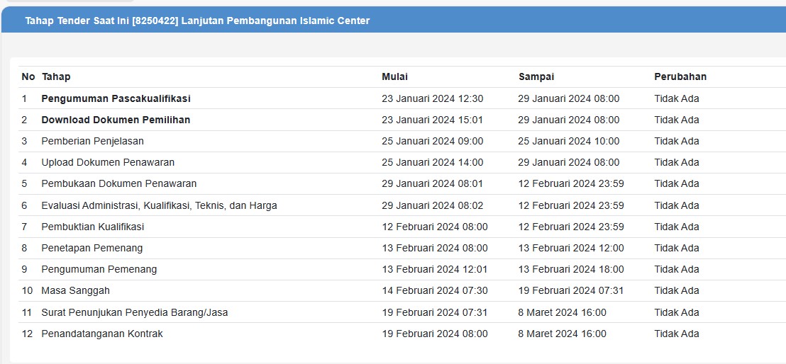 | Judul | Tahapan Pengadaan Barang dan jasa Lanjutan Pembangunan Islamic Center |