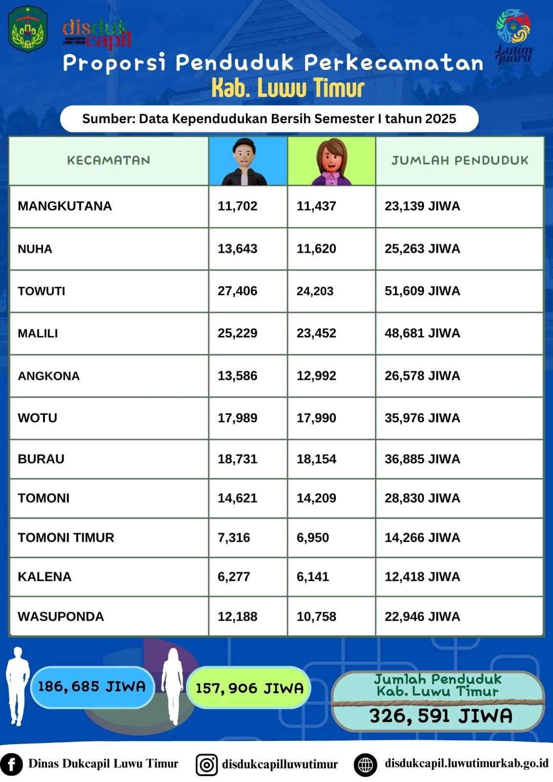 | Judul | Proporsi Penduduk Perkecamatan Kab. Luwu Timur -Semester I Tahun 2025 |